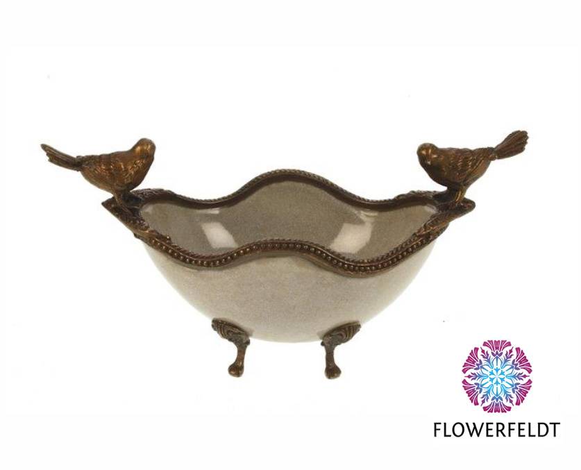 Een bijzondere schaal gemaakt van porselein en brons. Deze handgemaakte vogel schaal op pootjes voegt een fijne sfeer aan je interieur toe. Gemaakt van ambachtelijk porselein uitgevoerd in crème craquelé. Deze vintage schaal heeft een klassieke uitstraling, is rijk gedecoreerd en gemaakt van de beste materialen.
