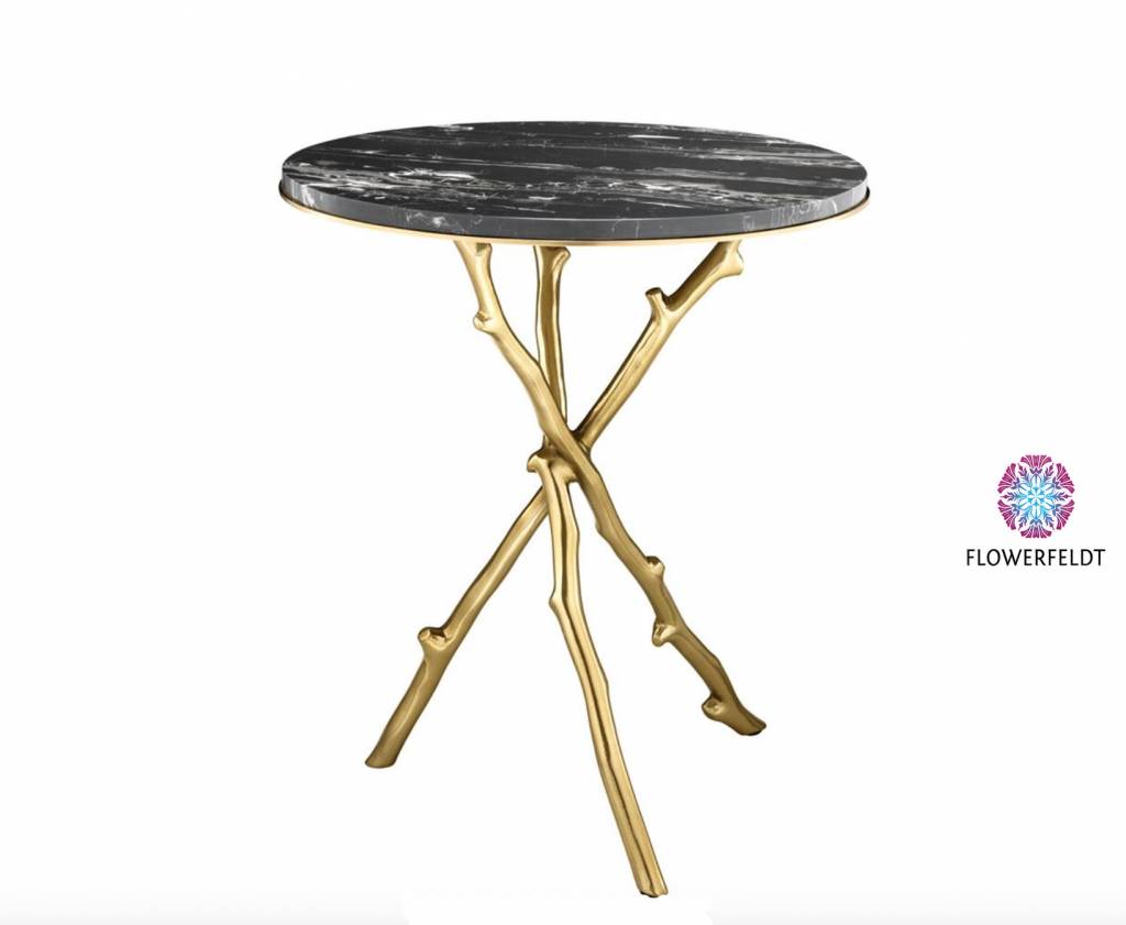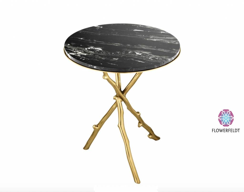 Side table Westchester van Eichholtz: gouden side table met zwart marmeren blad