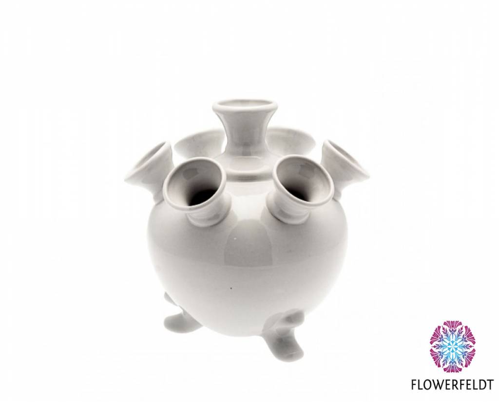 Witte tulpenvaas op pootjes in effen wit. Deze witte tulpen vazen zijn handgemaakt. Praktisch decoratievaasje voor losse snijbloemen. Deze bolvormige tulpen vaas in effen wit heeft een luxe uitstraling. Kortom, een prachtig product en wereldwijd icoon!