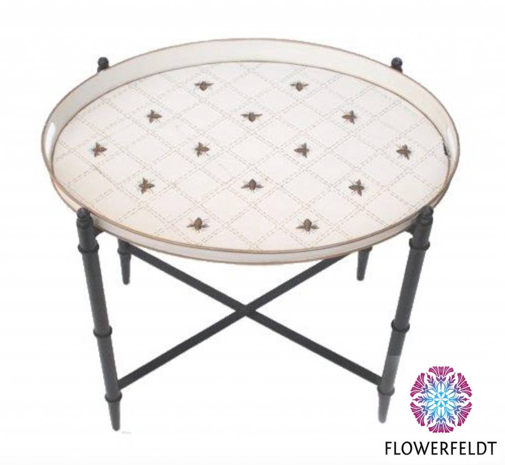 Retro vintage tafeltje wit met bijtjes motief. Het ronde dienblad is prachtig met de hand geschilderd. Het minimalistisch design is een lust voor het oog. Erg handzaam tafeltje en door het formaat overal in huis te plaatsen.