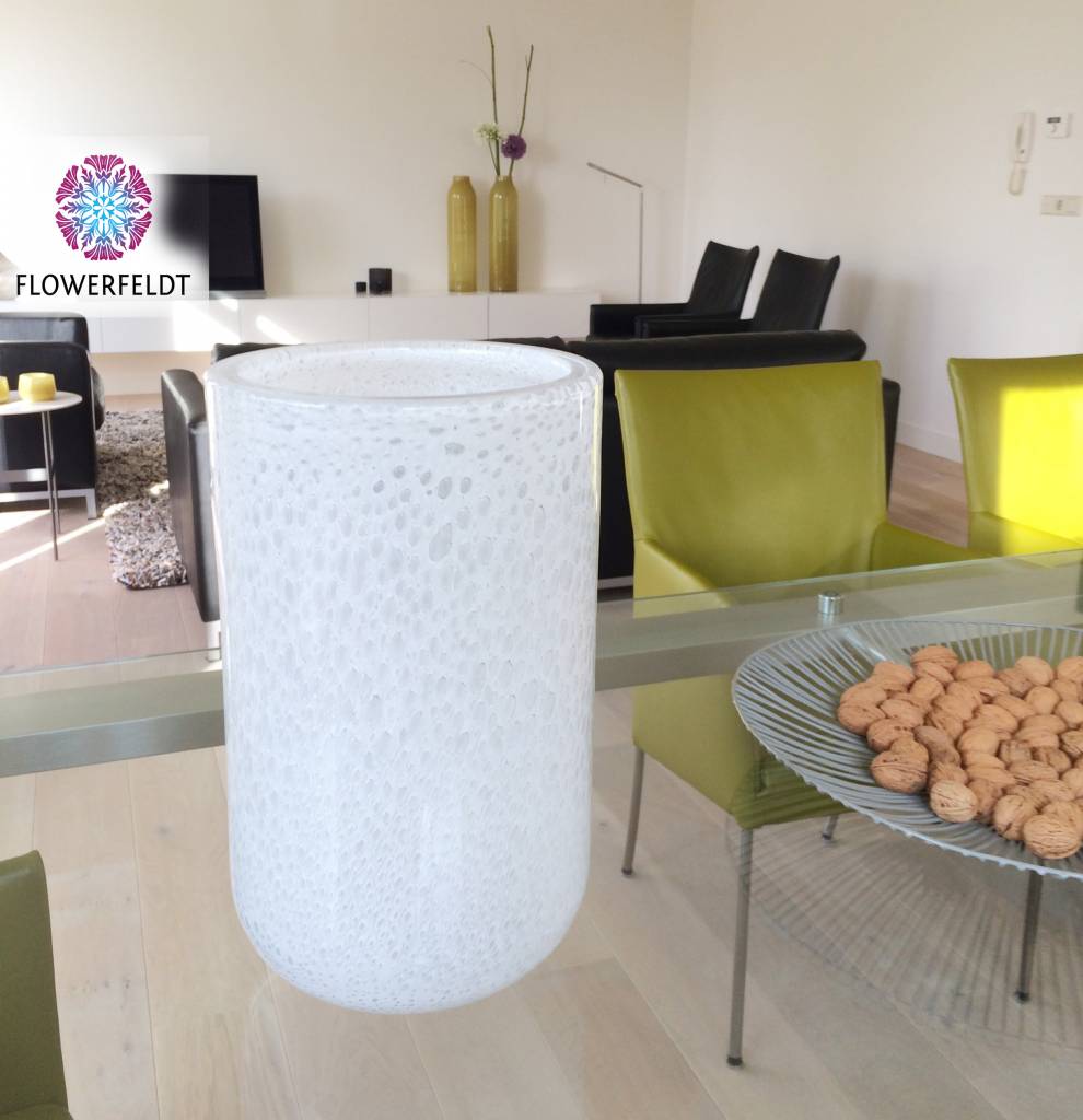 Mooi glaswerk van Flowerfeldt® is een aanwinst voor je interieur. Met de witte glazen vaas thick white bubbles van DutZ haal je zeker iets exclusiefs in huis. Deze witte vazen met bubbels zijn tijdloos, mondgeblazen en van compromisloze kwaliteit. Iedere moderne witte vaas van DutZ heeft zijn eigen karakter. Dat maakt de luxe vazen thick white bubbles van DutZ extra bijzonder.