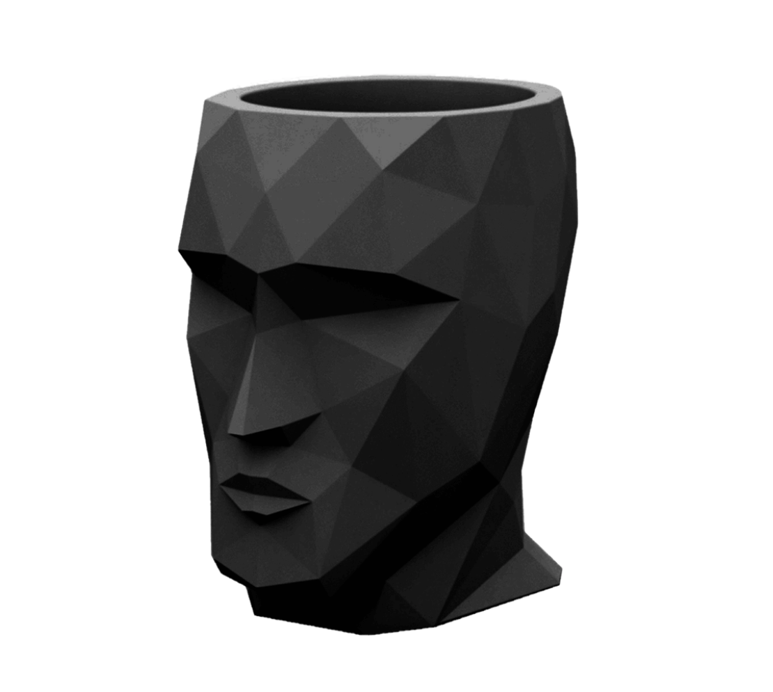 Zwarte potten Adam zijn design potten van 42 cm hoogte. Bloempotten zwart met gezicht. Zwarte plastic potten met moderne uitstraling. Design potten zwart gemaakt van duurzaam resin. Met deze potten zwart maak je jouw terras uniek!